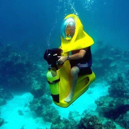 Experience an underwater adventure like no other with the Scuba Doo – Diving Scooters in Punta Cana! Unlike traditional snorkeling or scuba diving, this unique experience lets you ride a motorized underwater scooter, effortlessly gliding through the crystal-clear waters while breathing comfortably. With a built-in helmet that keeps your head completely dry, you can fully enjoy the breathtaking marine scenery without the hassle of traditional diving gear.